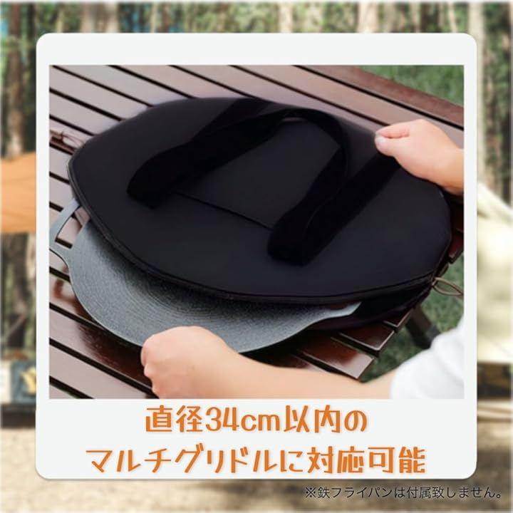 「様々な用途で使用可能」このマルチグリドル収納バッグは直径34cm以内のマルチグリドルに対応可能です。