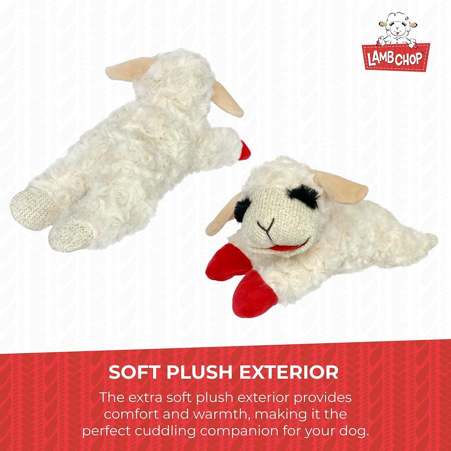 1960年台から90年台まで、アメリカのテレビショーで最も活躍した腹話術師、シャーリー・ルイスさんのオリジナルパペット人形「ラムチョップ」が、犬用ぬいぐるみになって帰ってきました!まつげが長くてなんともキュートな子羊ちゃんです。見た目通り、ふわっふわでもっこもこ。中にスクイーカーが入っているので、遊んでいると楽しく音が鳴ります。