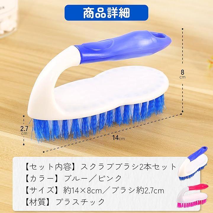 「商品仕様」 「セット内容」スクラブブラシ2本セット「カラー」ブルー・ピンク(2色セット)「サイズ」約14x8cm/ブラシ約2.7cm「材質」プラスチック製