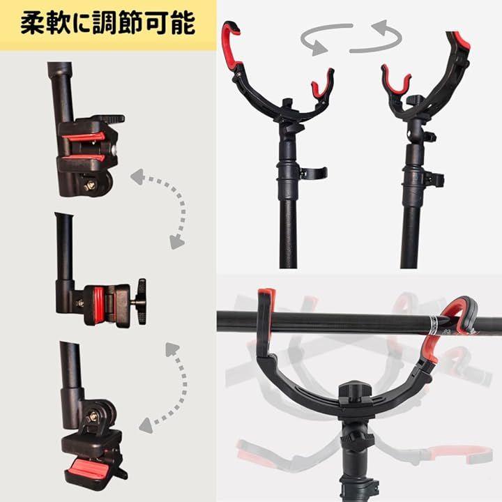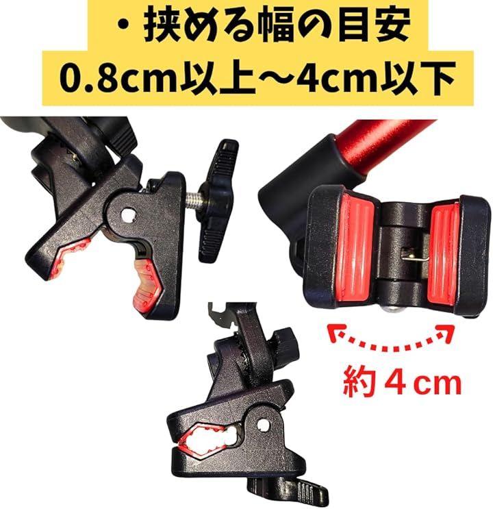 「調節自在」クランプ部分の向きや竿の向き、角度など調整可能なギミック多数。