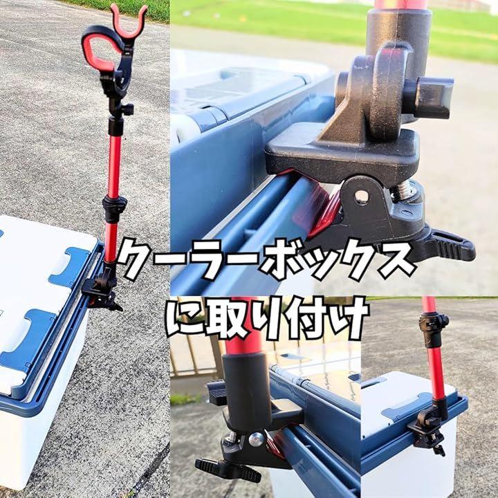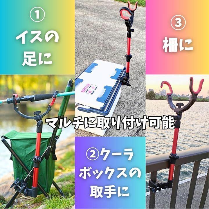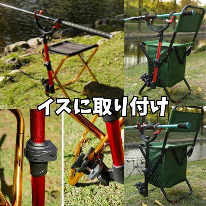レジャーで使う椅子やクーラーボックスの取手、公園の柵などマルチに釣り竿を取り付けられる竿受け。