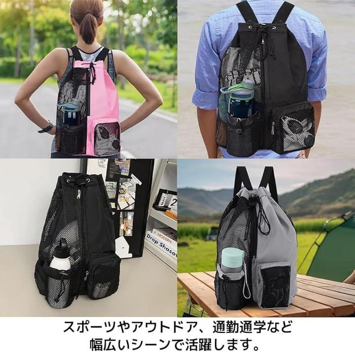 メッシュ素材で通気性に優れおり、濡れたタオルや運動後の着替えを持ち運ぶのにもぴったりです。