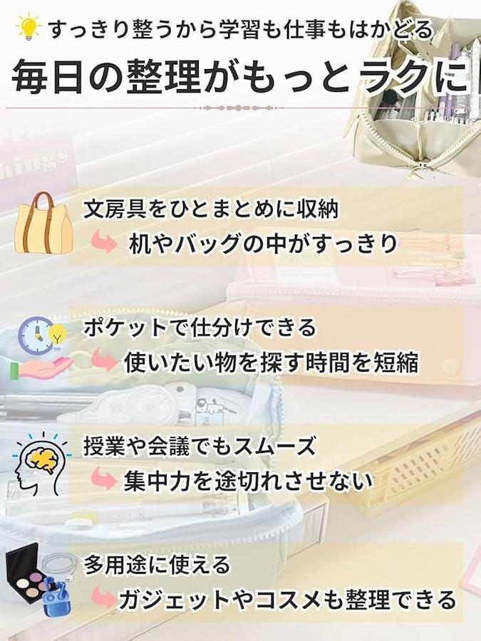 「多用途で便利なポーチ」筆箱としてはもちろん、コスメポーチ、メイクポーチ、ツールケース、ガジェット収納ポーチなど、多目的に使うことができます。