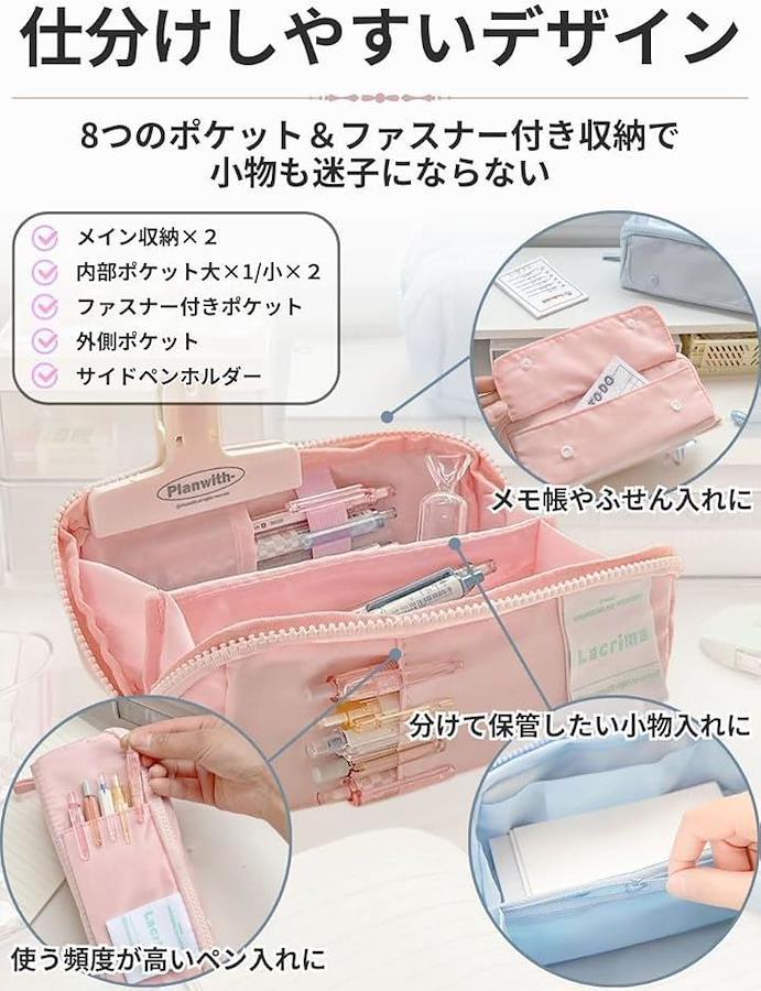「大容量収納とかわいいデザインの多機能ペンケース」かわいらしい見た目のデザインと実用性を兼ね備えたペンケースです。