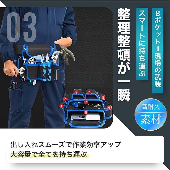 「作業効率が変わる」8ポケットの大容量・腰袋タイプ工具ポーチ 「探す」「落ちる」「ズレる」——現場でありがちなストレスを減らし、必要な工具をサッと取り出せる“腰の相棒”です。
