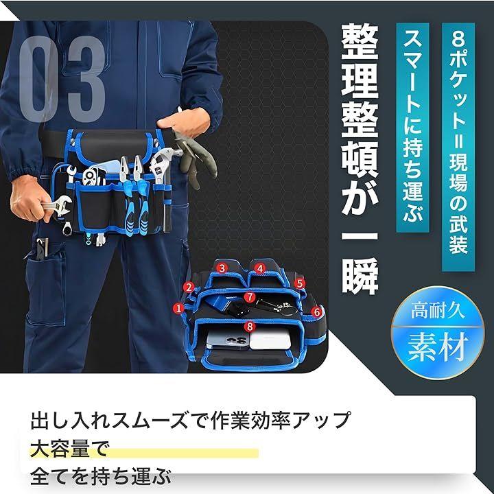 「作業効率が変わる」8ポケットの大容量・腰袋タイプ工具ポーチ 「探す」「落ちる」「ズレる」——現場でありがちなストレスを減らし、必要な工具をサッと取り出せる“腰の相棒”です。