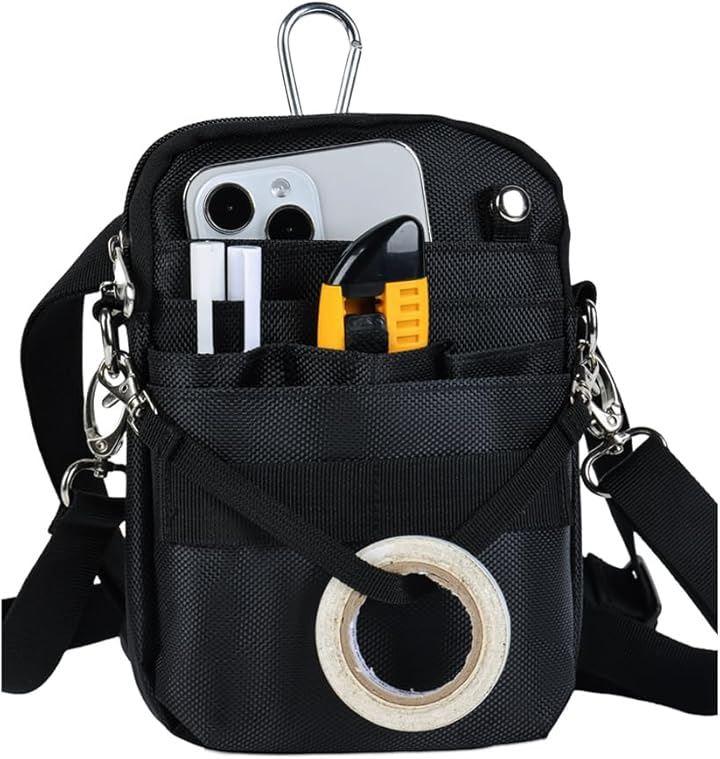 マチ5cm大容量、複数ポケットと多数の機能を兼ね備えた仕事用ウエストポーチ。6.8インチスマホも入れられます。