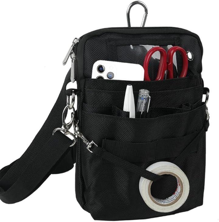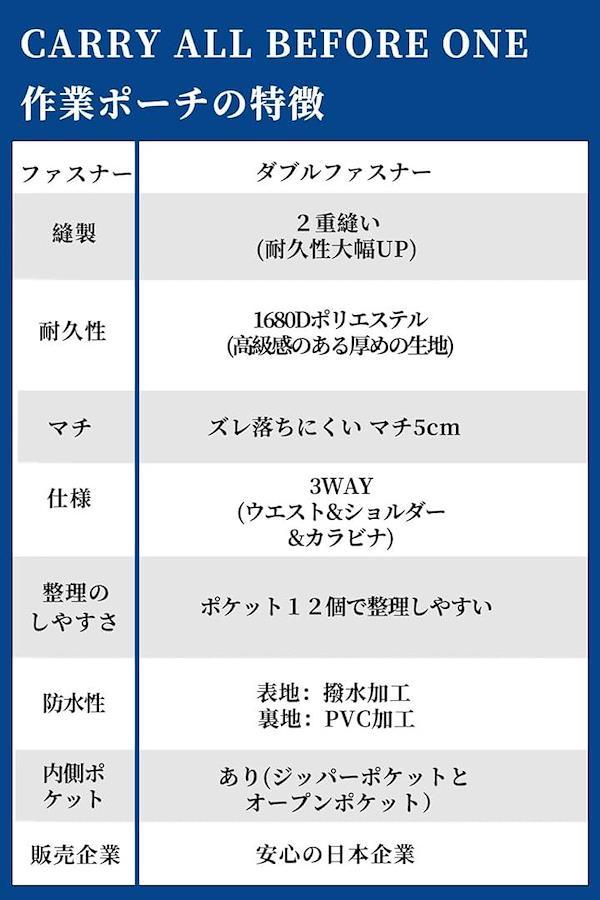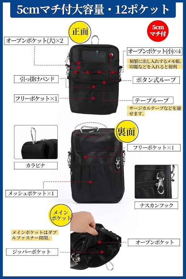 マチ5cm大容量、12ポケットと多数の機能を兼ね備えた仕事用ウエストポーチ。スマホもミニタブレットも入れられます。