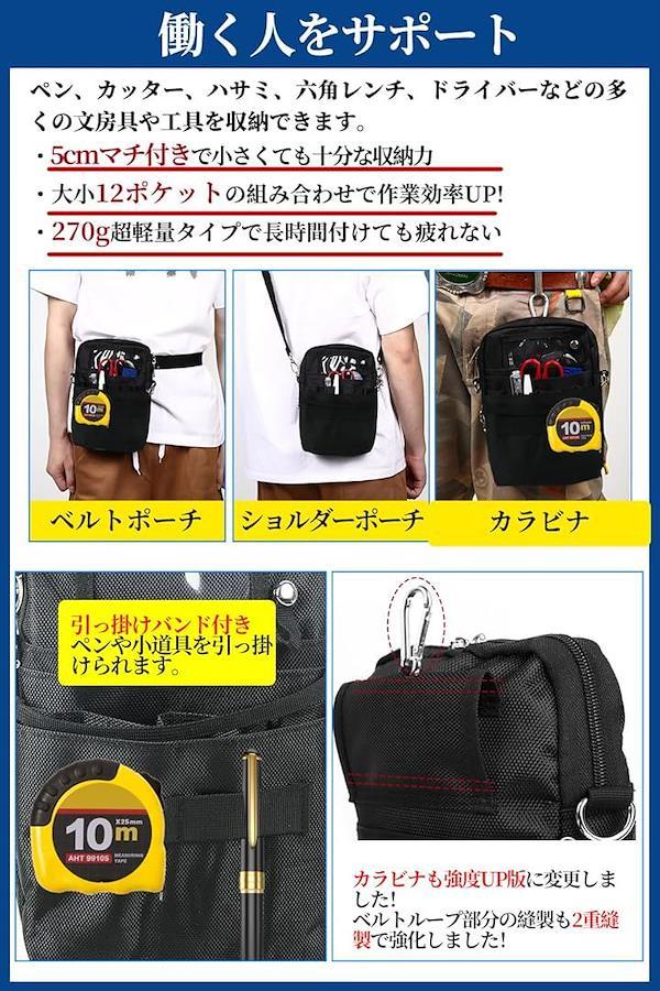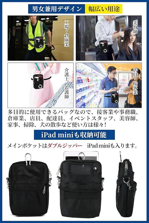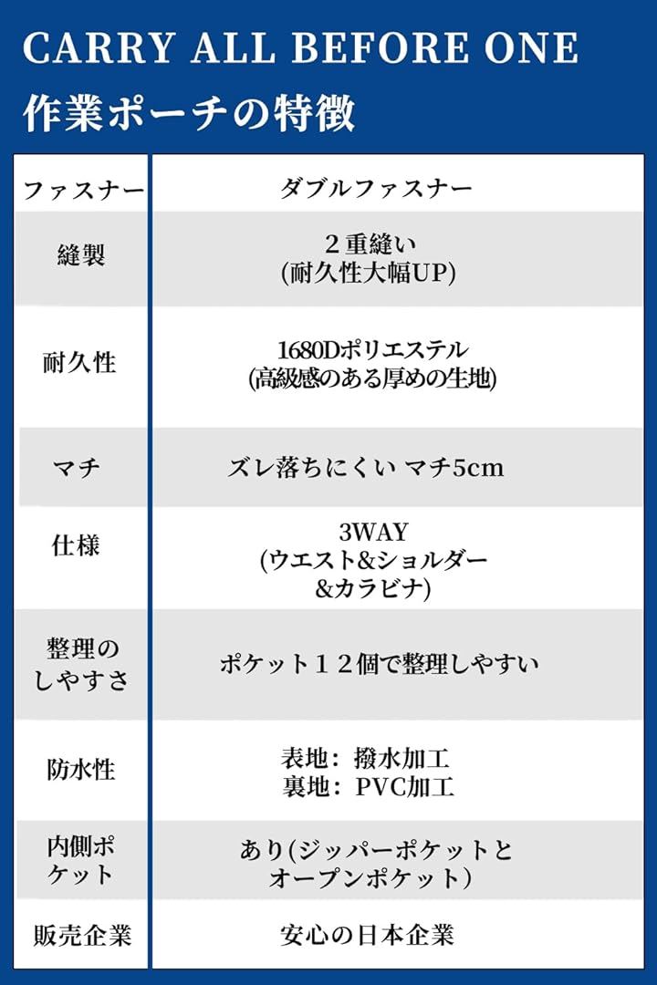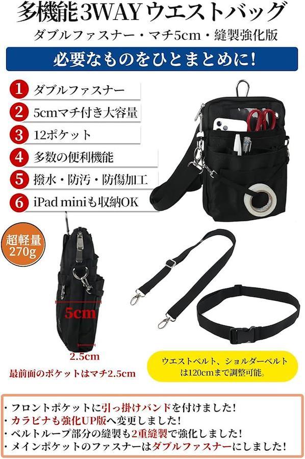 マチ5cm大容量、12ポケットと多数の機能を兼ね備えた仕事用ウエストポーチ。スマホもミニタブレットも入れられます。