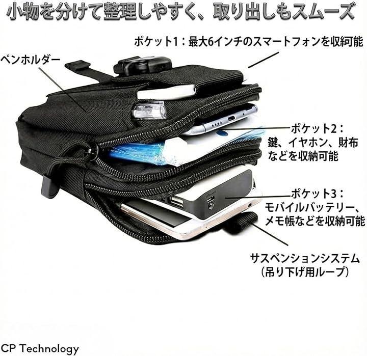 ウエスト装着やバッグへの取り付けが可能で、必要な物を身近に携帯できます。