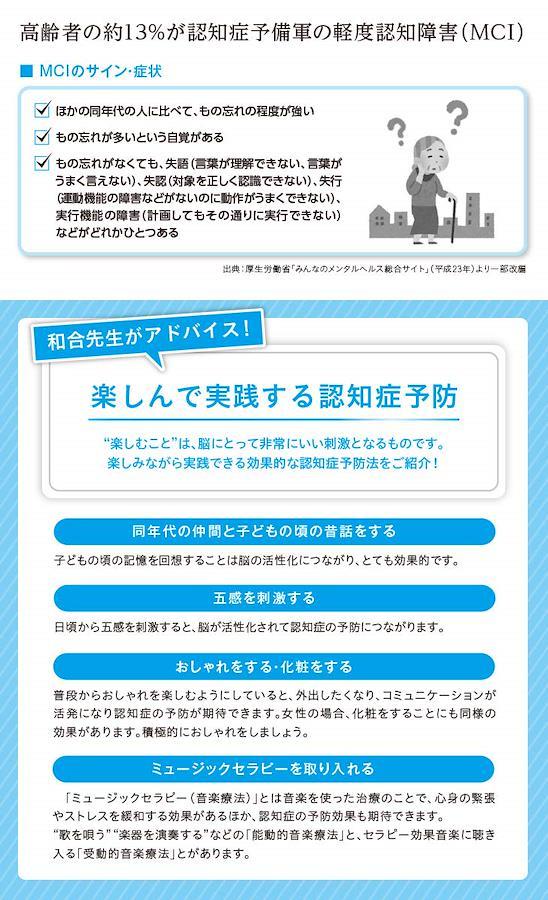 日々の生活の中で気軽に実践できる“ミュージック・セラピー"は、毎日楽しみながら気持ち良く“脳トレ"を続けられるのが魅力。さらにCD添付の16Pブックレットには、和合教授の「認知症予防のためのアドバイス」も、掲載されています。