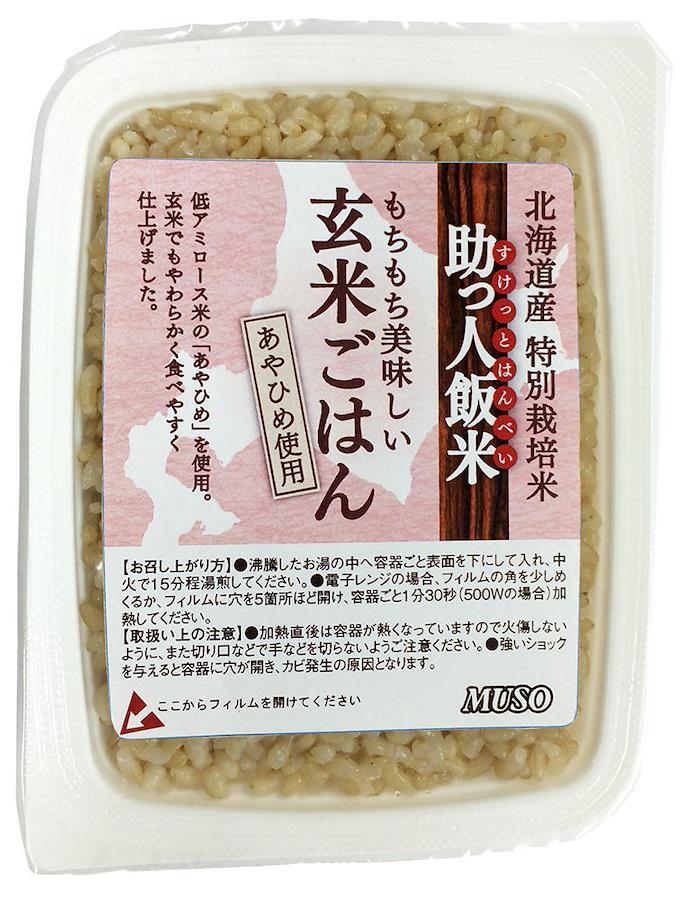 北海道産特別栽培米「あやひめ」の玄米を圧力釜で丁寧に炊きあげ、お手軽に召し上がれるパックごはんに仕上げました。 北海道産特別栽培米・玄米(あやひめ)を圧力釜でじっくり炊きあげた玄米ごはんです。 圧力釜で炊くことで、もっちりとした食感になりおいしくお召し上がりいただけます。 『あやひめ』は粘がとても強く、たいへんやわらかいので玄米食に最適です。玄米特有の糠の匂いも少ないです。