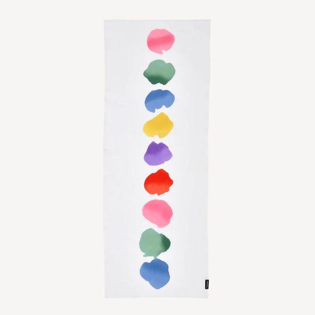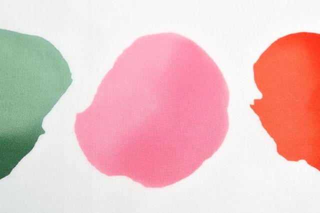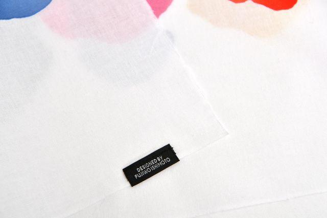 吸水性の高い生地のため、布巾として手や濡れたものを拭いたり、1枚あると便利です。使えば使うほど、肌触りが良く、手に馴染みます。また、インテリアとしてもお楽しみいただけます。吊るして掛け軸のように飾る、半分に折り畳んだ状態で現れる柄も楽しむなど、その鮮やかな色彩は空間コーディネートのポイントになります。石本藤雄の遊び心や彩りを、自由に取り入れてお楽しみください。
