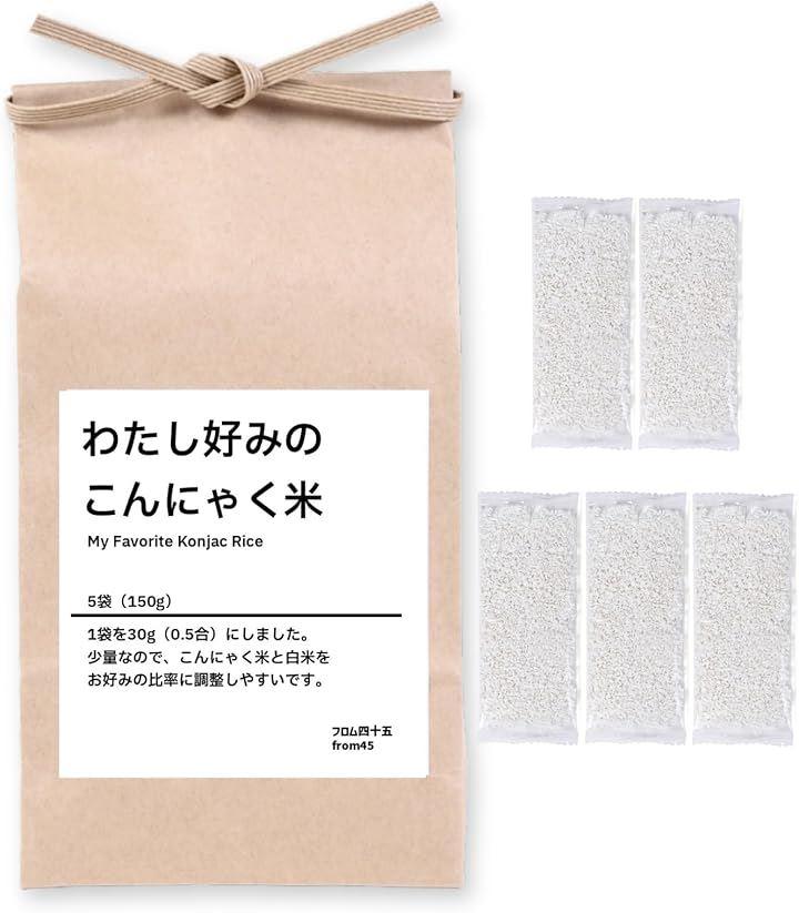 こんにゃく米:白米=1:1の場合、こんにゃく米を30g(お米用計量カップの1/4)にすると、出来上がりは1合です。