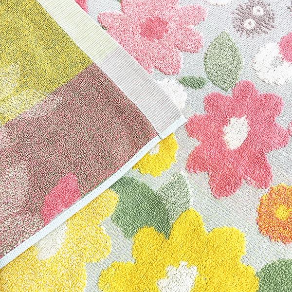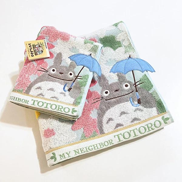 お花いっぱいの中に傘を差した大トトロと小トトロの姿のバスタオルです。色合いも優しく、さわり心地も柔らかいタオルです!