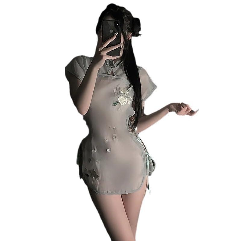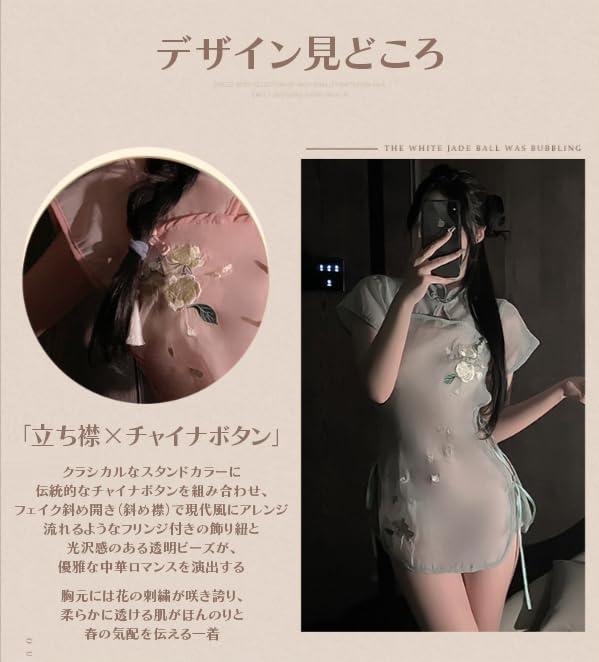 取り扱い案内 手洗いのみ【セット内容】チャイナドレス+Tバック【サイズ】フリーサイズ、衣長71cm、Tバック腰囲 64?100cm、推奨体重40-65kg【商品特徴】シースルーの柔らかい生地は、ボディラインを程よく透かし、バストやヒップを美しく引き立てます。刺繍入りのチャイナ風トップスと飾り紐は、古典的で上品な印象を与えます。両サイドには深めのスリットが施され、ウエストや美脚をセクシーに露出。上品さの中に官能的な魅力を添えます。クラシックとセクシー、相反する2つのテイストが交差し、印象的で誘惑的な雰囲気に。視線を惹きつけ、心を刺激します。【適用場合】ハロウィン、クリスマス、コスプレ、パーティー、仮装、学園祭、文化祭、プレゼント、コレクション。特別な夜に、恋人との時間をよりロマンチックに。SNS撮影、プレゼント用、自分へのご褒美としてもおすすめの一着です。【品質保証】商品が到着した後、万が一商品に何か不具合がございましたら、※お問い合わせ方法:「注文履歴」-「該当注文」-「商品について質問する」をクリックして、弊社までご連絡いただけるようにお願い申し上げます。24時間以内に対応いたします。【安心配送】ご満足いただけるように中身が見えないよう丁寧に梱包し、お客様のプライバシーに配慮しております。どうぞ安心してご注文ください。(#lf)(#lf)(#lf)商品購入前に、ストア紹介ページをご確認ください。