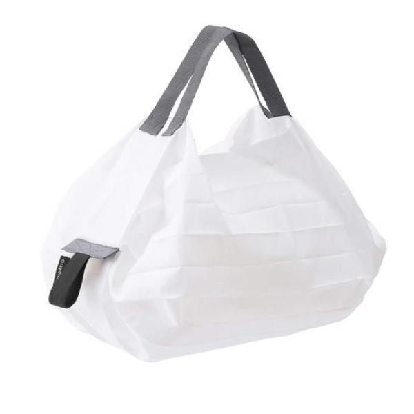製品の特徴●両端をシュパッと引っ張ると一気にたためるポケッタブルエコバッグです。●たたむとポケットに入るミニサイズで持ち運びに便利です。●500mLのペットボトルが6本入るサイズです。