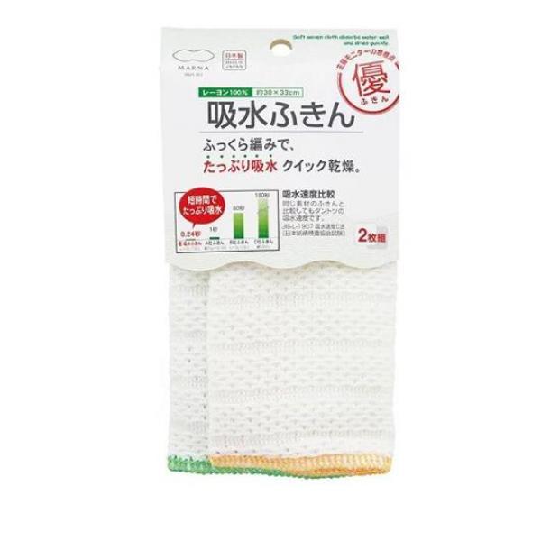 製品の特徴●マーナ 優 吸水ふきん K-243●吸水性がよく、ふき取りやすいふきん(布巾)です。●植物繊維を原料とした天然素材のレーヨン100%を使用。●綿よりも高い吸水性と、速乾性を実現させました。●主婦モニターから合格点をいただいた、吸水ふきんです。●サイズ:約30×33cm