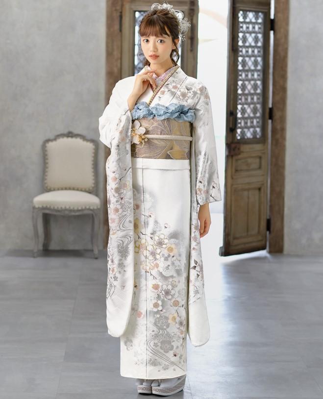 NABESHIMAオリジナル振袖、「furisode Coffret」CF-505。受注生産になりますので、生産に約3か月、仕立てに2か月、合計最長で5か月程度を見込みます。なお、仕立てに関しましては、特にご指定のない場合、裄70㎝でお仕立てさせていただきます。胴裏はポリエステルです。1点あたりの重量:約1KG ※商品は振袖のみです※お返事は土日祝日除く平日の営業日5日間程度頂戴します