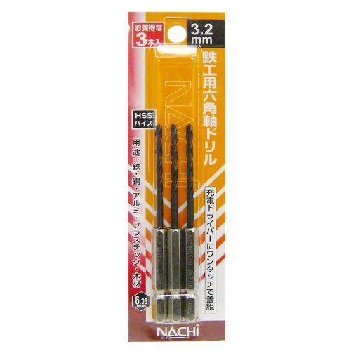 スタイル:3本入◆商品名:ナチ(NACHI)六角軸鉄工用ドリル3.2ミリ3本組(金属・金工)