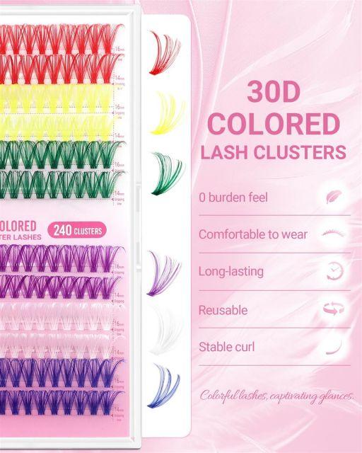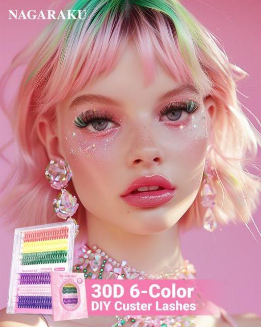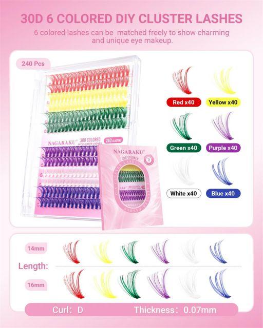 【部分用つけまつげ詳細】30Dカラフルなボリュームスタイル。太さ:0.07mm、カール:D。長さ:14-16mmミクス。カラー:虹色。