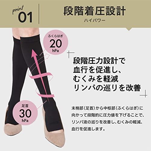 仕様 : ハイパワー(足首30hPa / 22.5mmHg・ふくらはぎ20hPa / 15.0mmHg)、履きくちやわらか