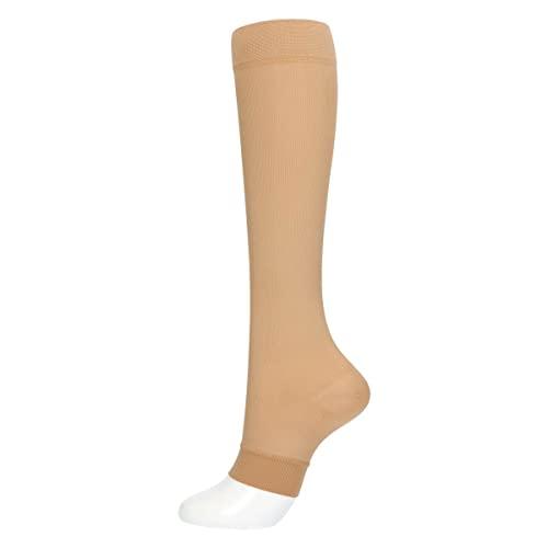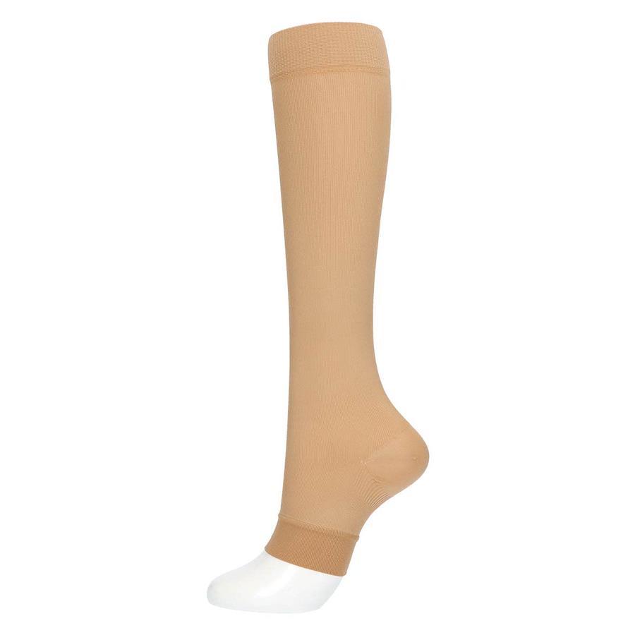丈・その他 : 着圧ハイソックス(オープントゥ) 総丈:約38cm(口ゴム~かかとの丈長) 身巾:約7.5cm(足首部の幅長) 約10cm (口ゴム部の幅長) (各サイズは商品単体を平らに置いた状態で計測しています。伸長性は考慮していませんのでご了承ください。)