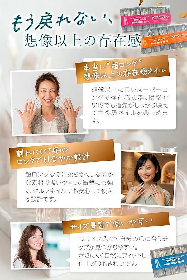 「商品仕様」 ソフトジェル製 クリア 240枚入り 12サイズ展開 超スーパーロング フルカバータイプ
