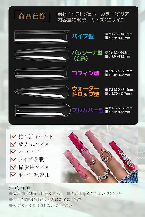 「商品仕様」 ソフトジェル製 クリア 240枚入り 12サイズ展開 超スーパーロング フルカバータイプ