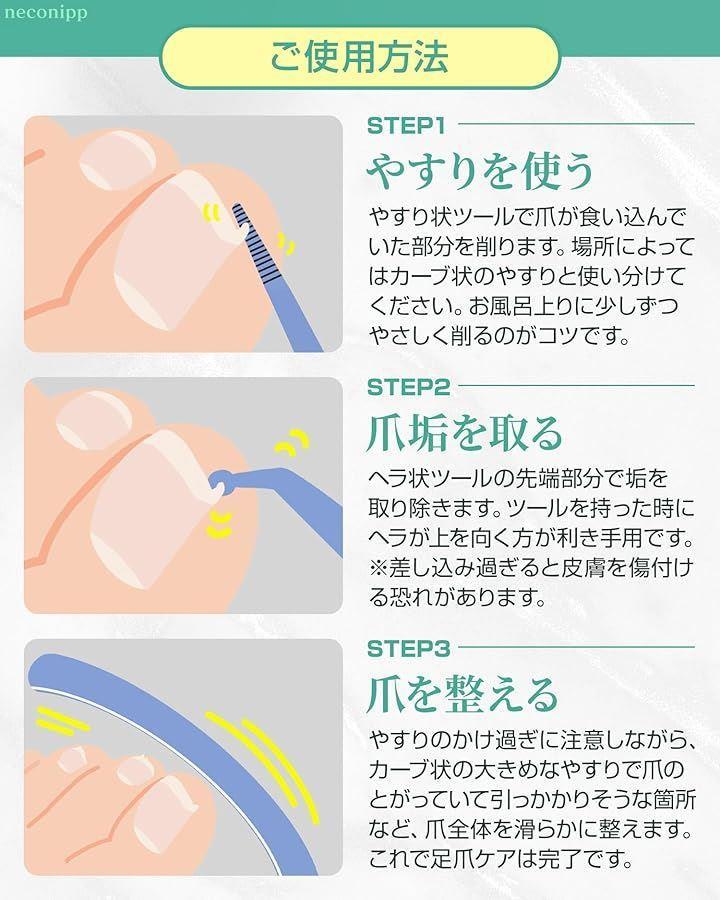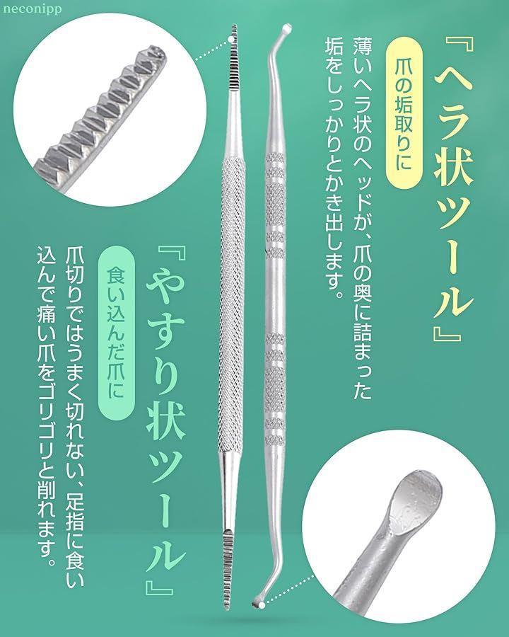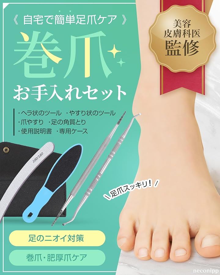 皮膚科専門家の意見を参考に設計された「巻き爪お手入れセット」です。使いやすさと清潔さを追求した、高級ステンレス製の爪垢取りと爪やすりをセットにしたアイテムです。