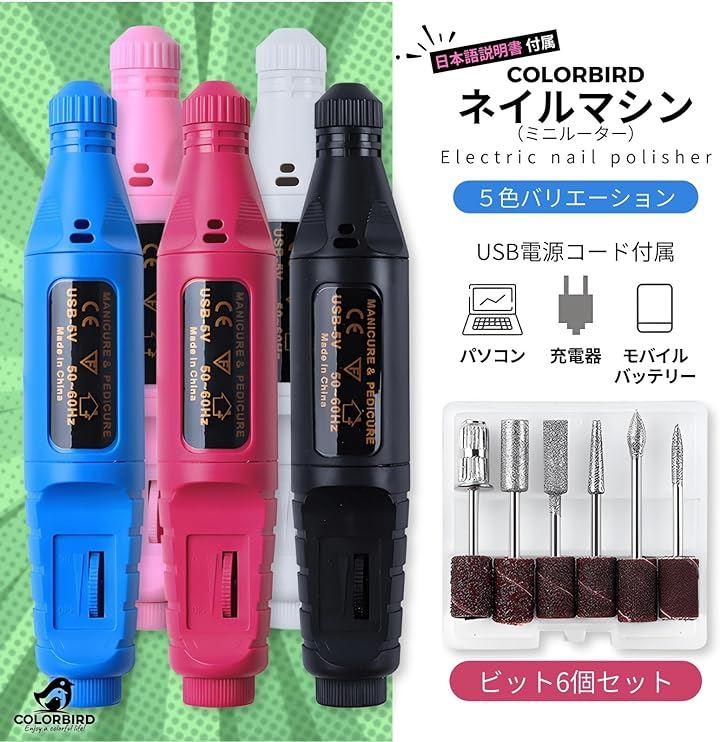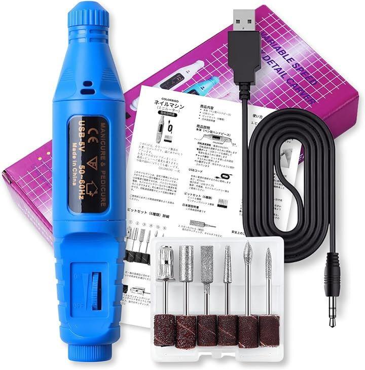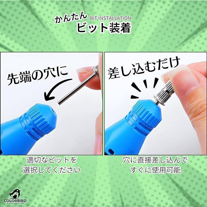 「6種類ネイルビットの豊富なセット」6種類のネイルビットがセットになっており、様々なネイルアートに挑戦できます。
