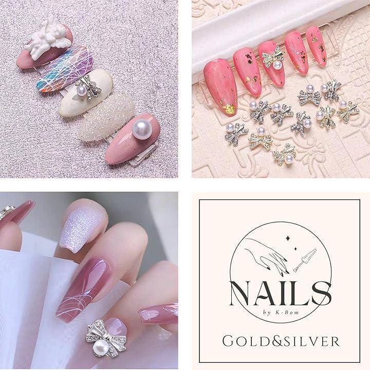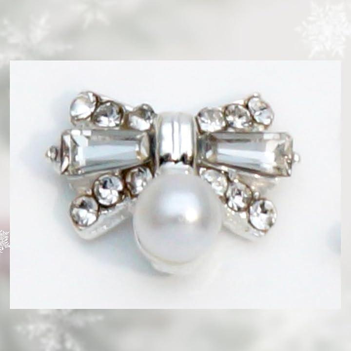 「ビジュー&パールデザイン」このネイルパーツは、小さくかわいいビジューのリボンにパールがついている3Dデザインで、指先に華やかな輝きとかわいらしさをプラスします。