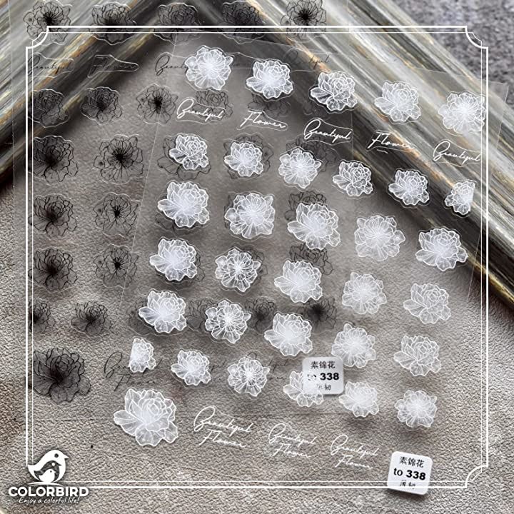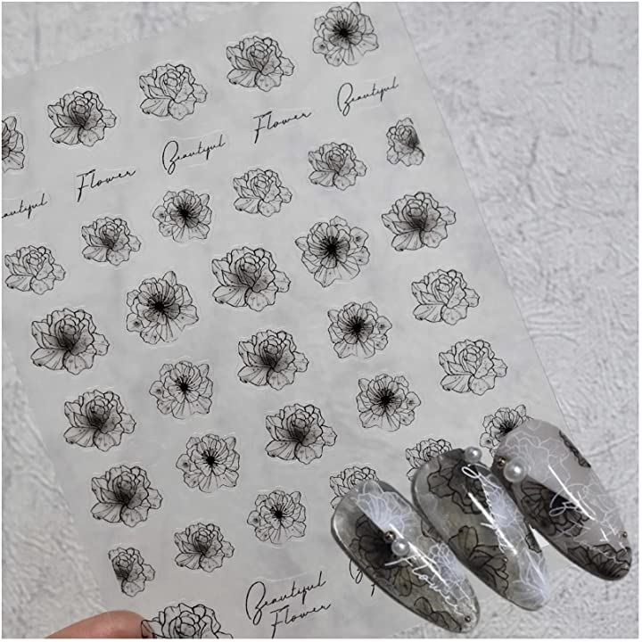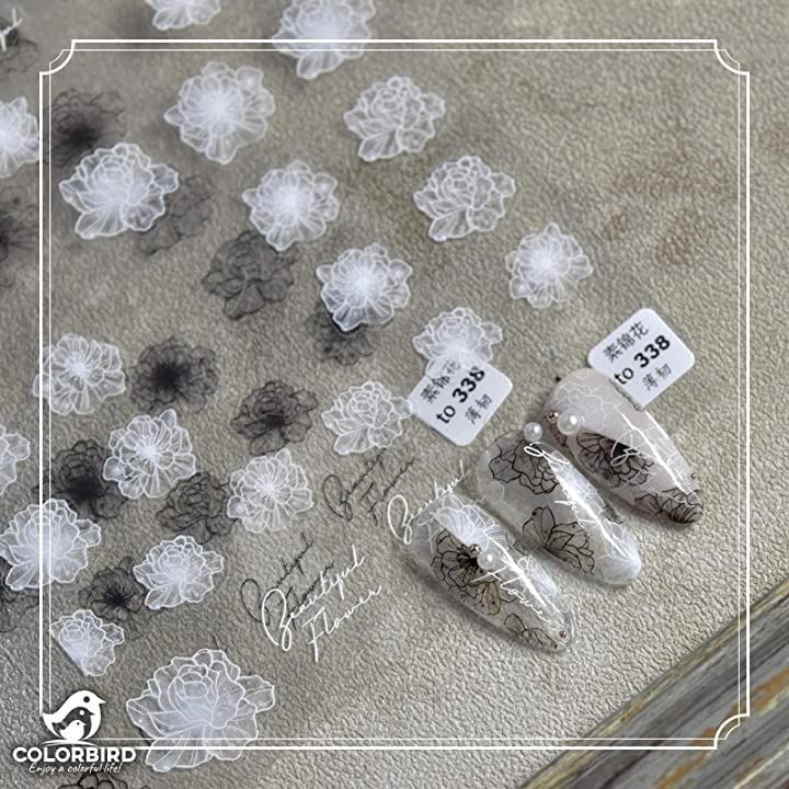 Nail stickers, floral design, semi-transparent, sheer, elegant, cute.