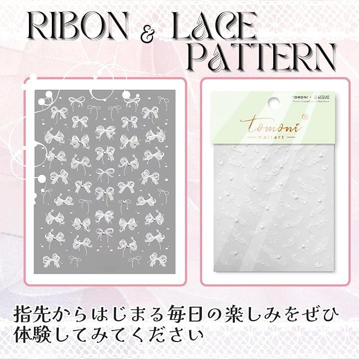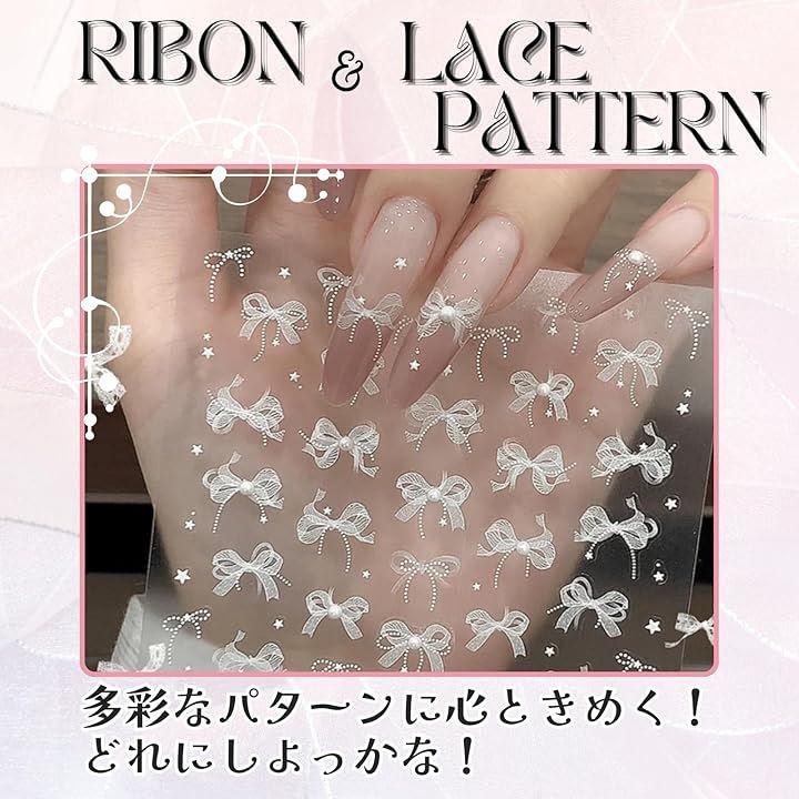 豊富な種類のレースのリボンのデザインがセットになっており、毎日の気分やシーンに合わせて自由にネイルアートを楽しめます。