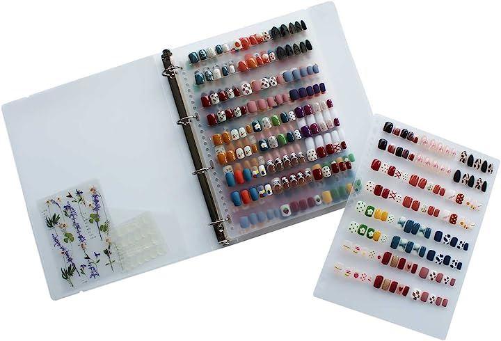 ・ひとつのバインダーでたくさんのネイルチップを収納できます。こちらの写真のように、1枚シートにネイルチップ12セット収納できます。