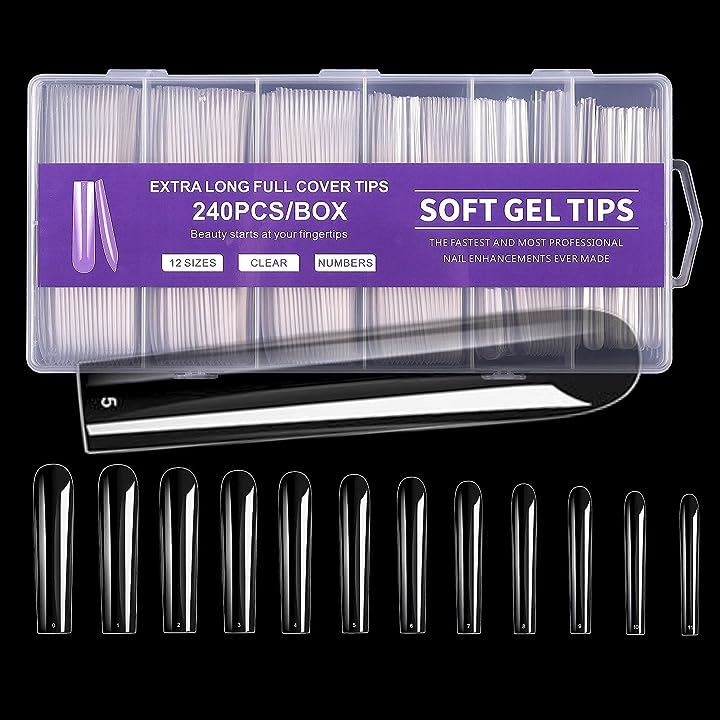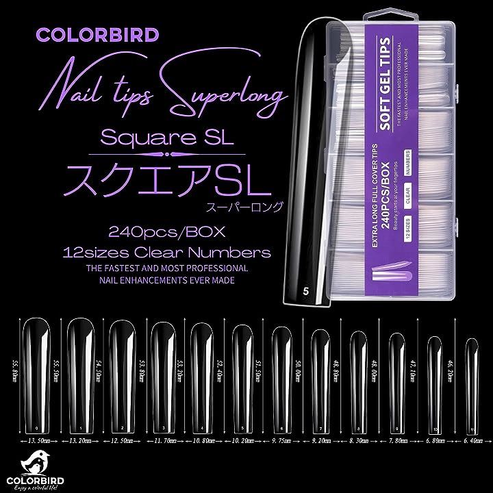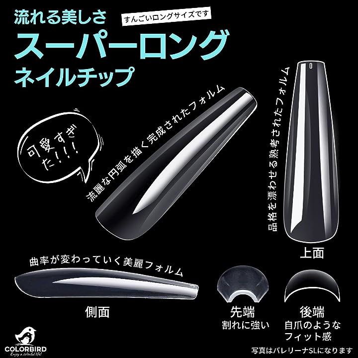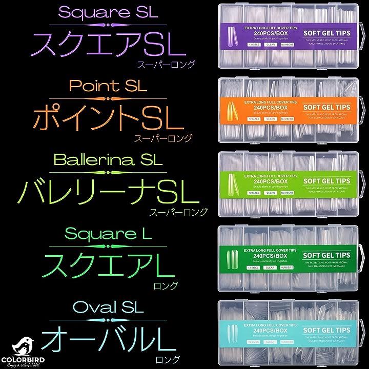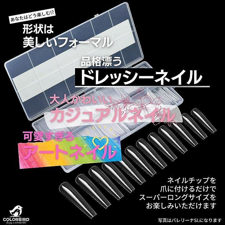 ネイルチップ スーパーロング 12サイズ 240pcs 長くて美しいネイルを楽しめるスーパーロングタイプ。