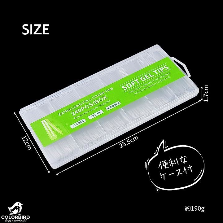 ・ネイルチップ スーパーロング 12サイズ 240pcs 長くて美しいネイルを楽しめるスーパーロングタイプ。