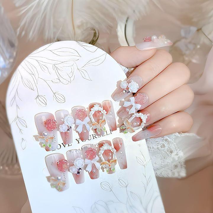 Nail tips, gal, Korean, children's, long, cute, ballerina, kogal, handmade