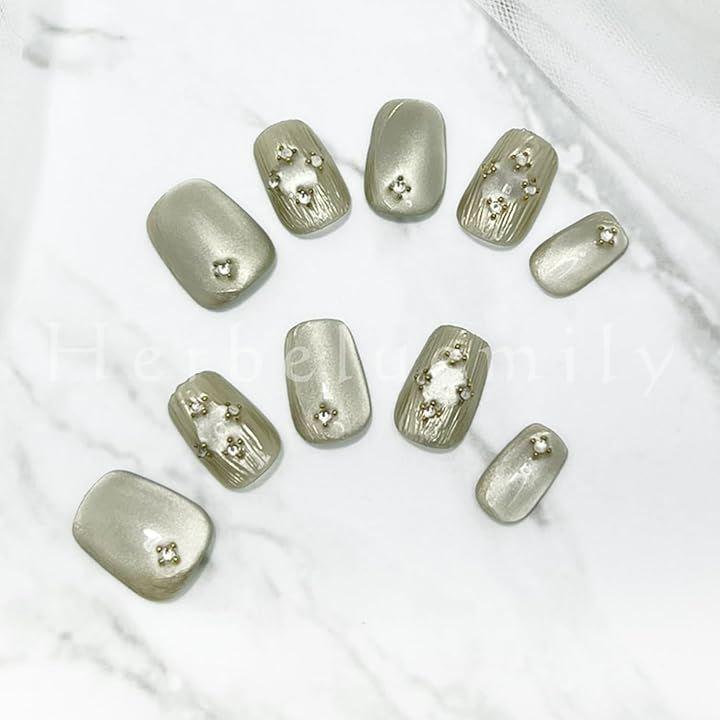 手作り風のネイルチップはつけ外しが簡単、付属の両面シールを貼り付けるだけ。