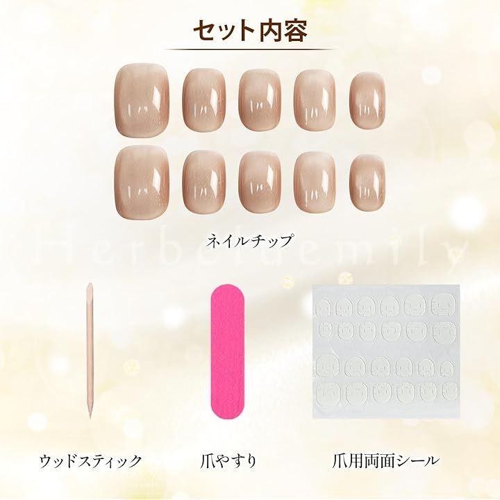 「商品仕様」専用クリアケース:7.5x7.5x1.6cm ネイルチップ10枚 付属品:両面シール、ウッドスティック、爪やすり *ネイルチップサイズの詳細は商品画像をご確認ください。