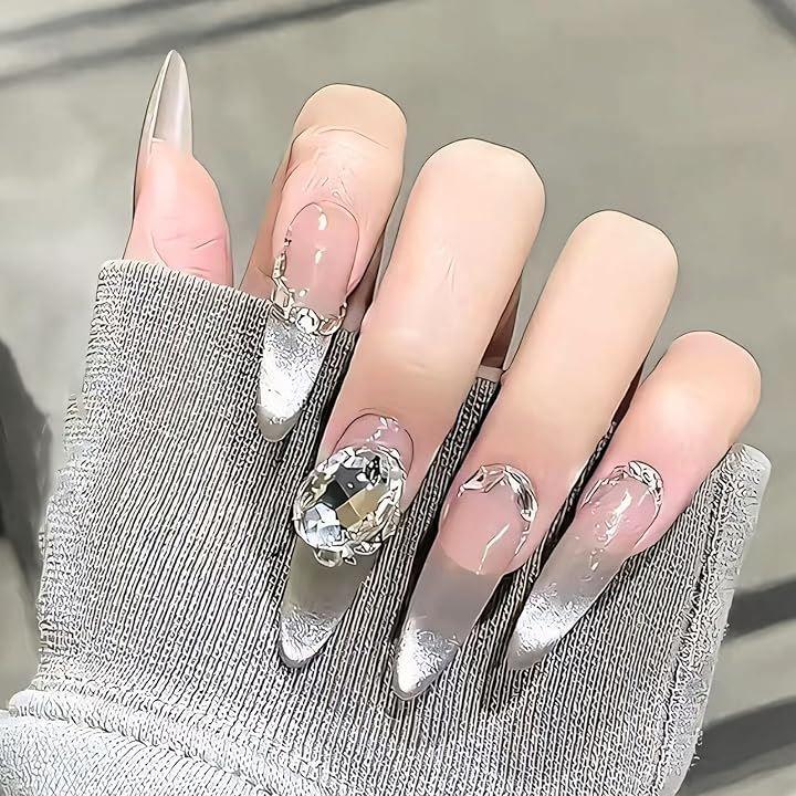 「高級感溢れるシルバーデザイン」あなたの指先に特別な輝きを添える、豪華で洗練されたデザインのネイルチップです。