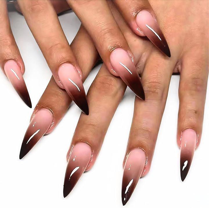 ピンクからブラウンへの美しいグラデーションが指先を引き立て、大胆でモダンなスタイルを演出します。