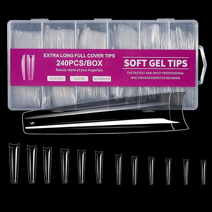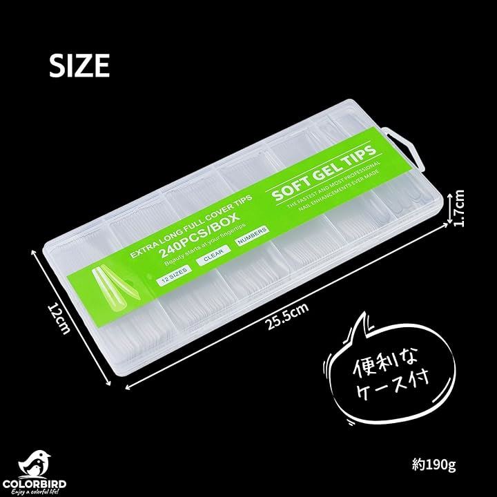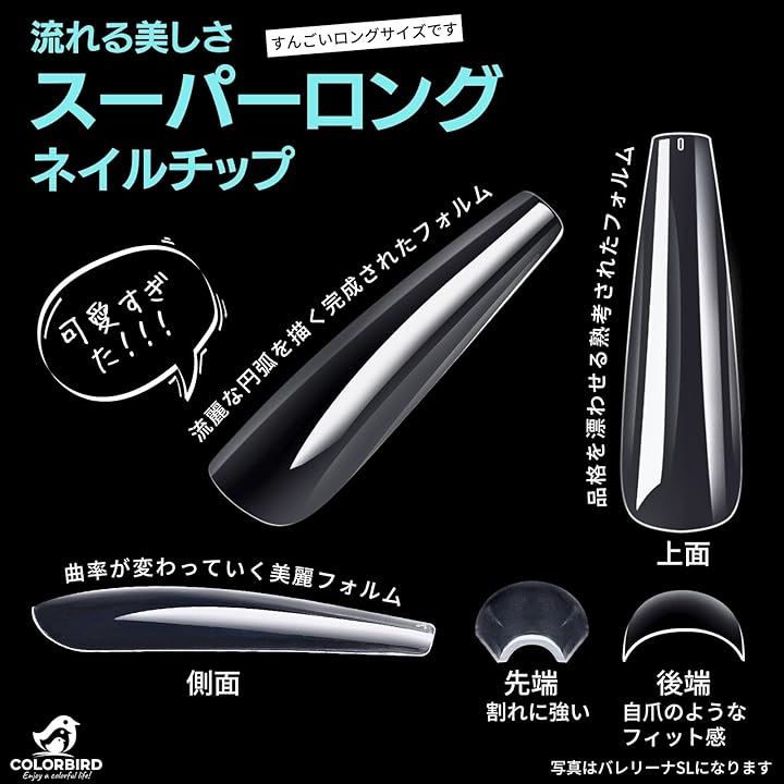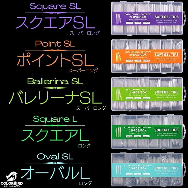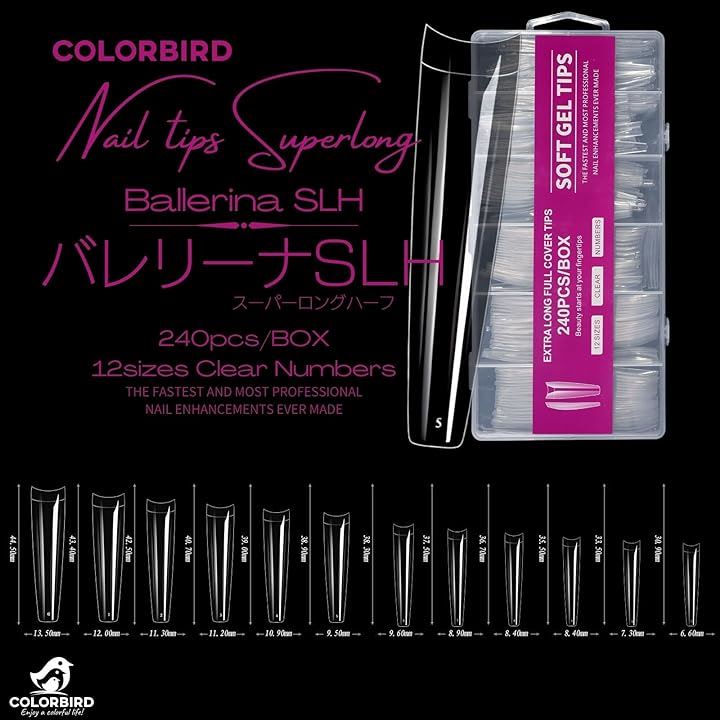 ネイルチップ スーパーロング 12サイズ 240pcs 長くて美しいネイルを楽しめるスーパーロングタイプ。