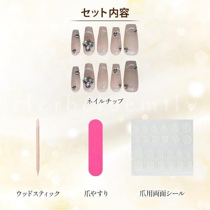 「商品仕様」専用クリアケース:8.5x8.5x1.8cm ネイルチップ10枚 付属品:両面シール、スティック、爪やすり *ネイルチップサイズの詳細は商品画像をご確認ください。