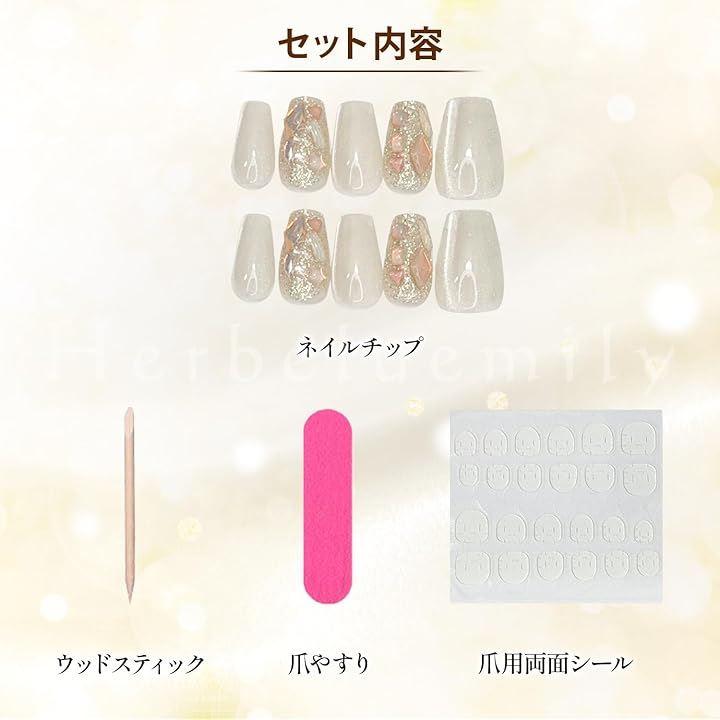 「商品仕様」専用クリアケース:8.5x8.5x1.8cm ネイルチップ10枚 付属品:両面シール、スティック、爪やすり *ネイルチップサイズの詳細は商品画像をご確認ください。