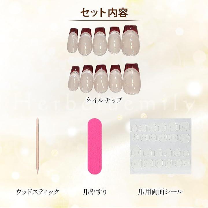 「商品仕様」専用クリアケース:8.5x8.5x1.8cm ネイルチップ10枚 付属品:両面シール、スティック、爪やすり *ネイルチップサイズの詳細は商品画像をご確認ください。