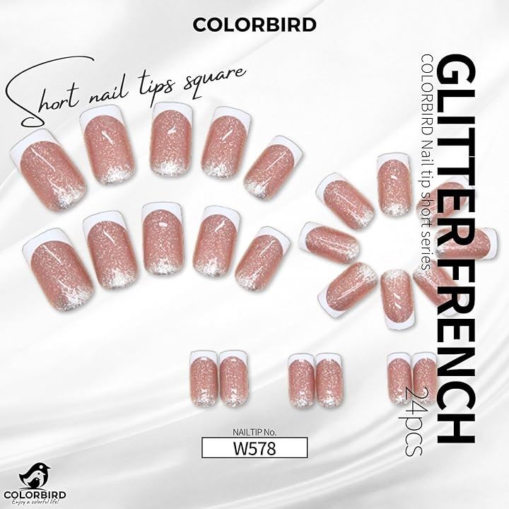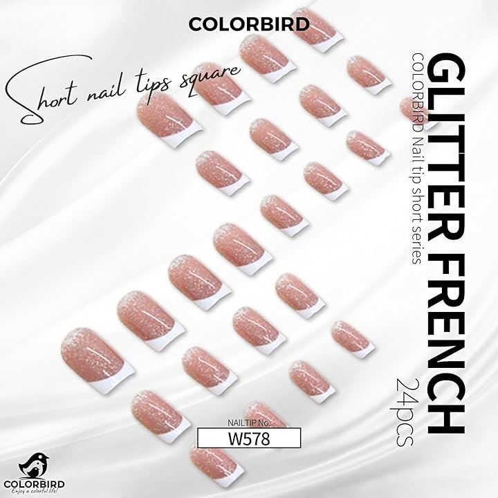 Nail tips short 24 pieces artificial nails short cute ballerina square