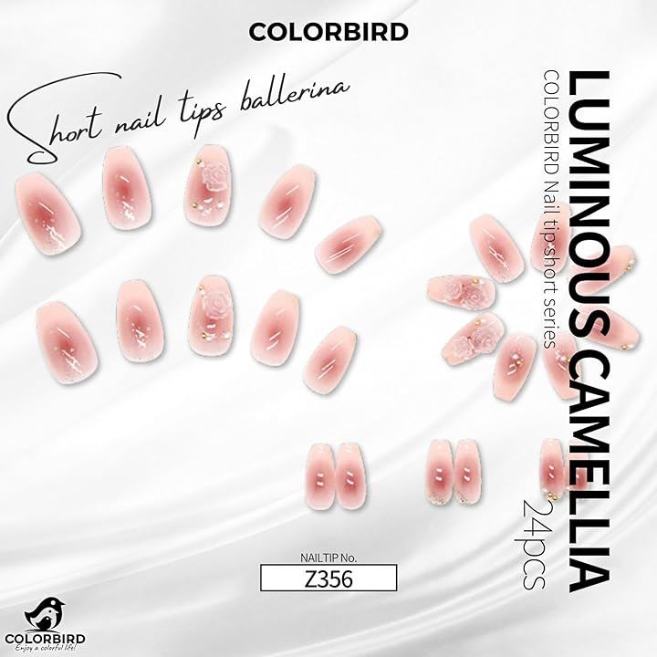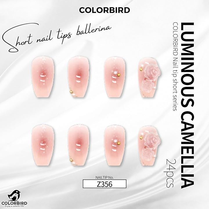 Nail tips short 24 pieces artificial nails short cute ballerina square