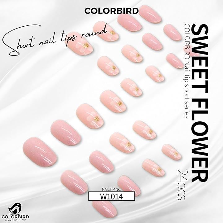Nail tips short 24 pieces artificial nails short cute points