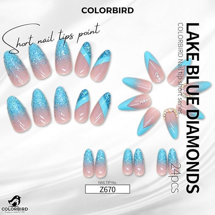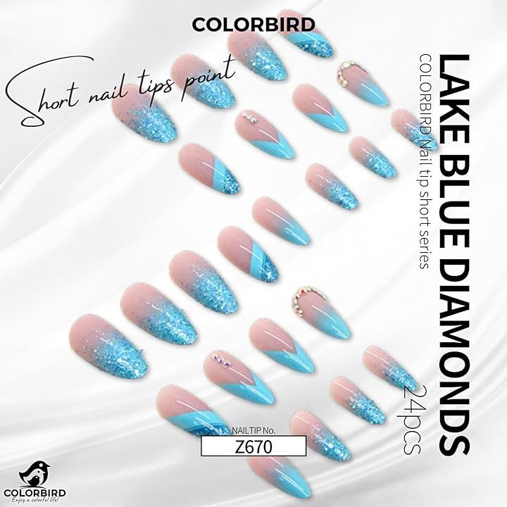 Nail tips short 24 pieces artificial nails short cute points